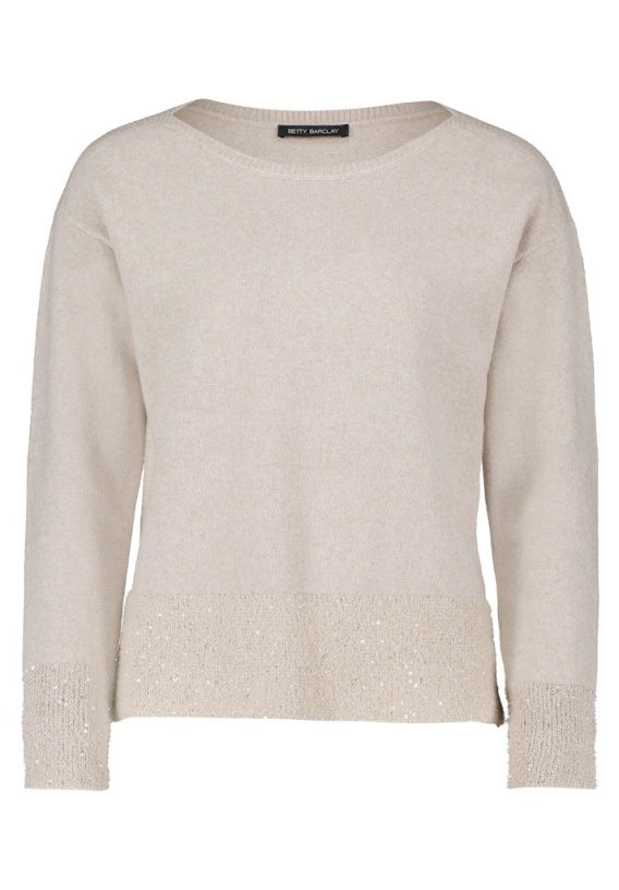 Wyjątkowo efektowny i miękki sweter Betty Barclay z długim rękawem, wykończony włosem i małymi cekinami,wykonany z ciepłej i bardzo            przyjemnej w dotyku dzianiny.
